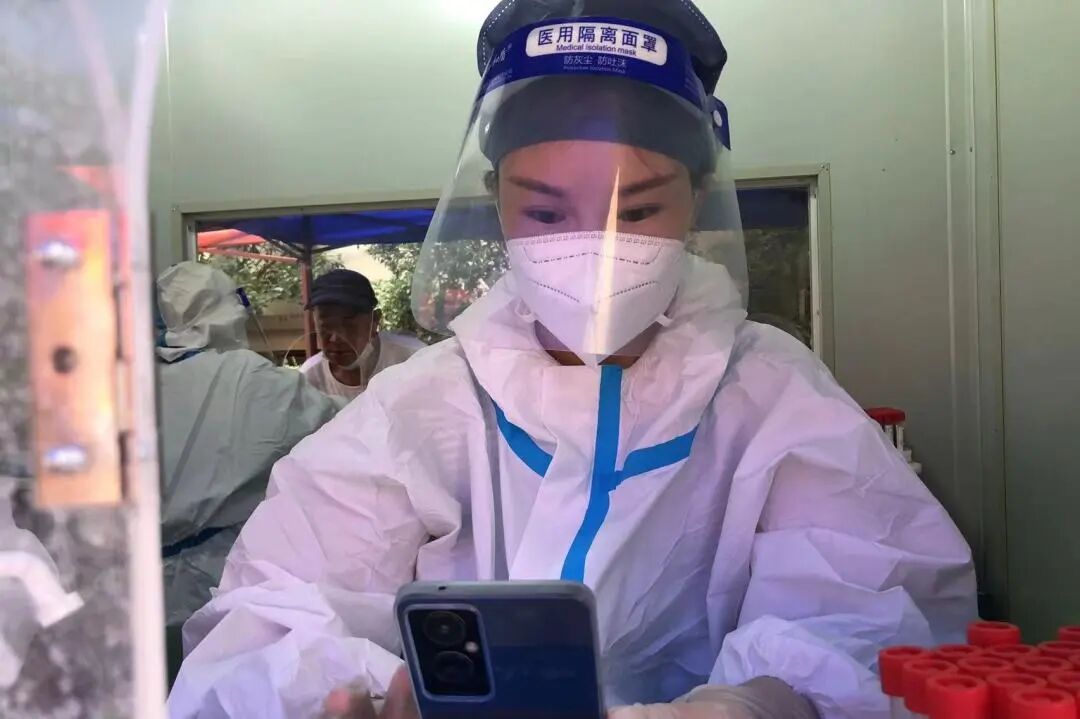 连续爬楼,穿上防护服跟随医生“扫楼”的第一天我就累趴了。短暂休息后,我感觉没什么大碍了,起来接着工作。之后很快适应,每天扫码、封管、开箱、封箱,忙完都是汗流浃背。