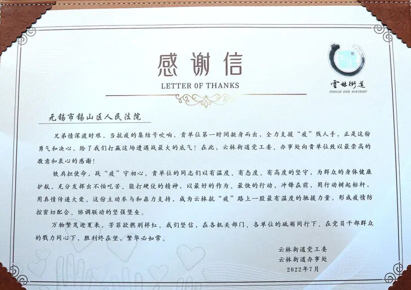 云林街道来送感谢信啦